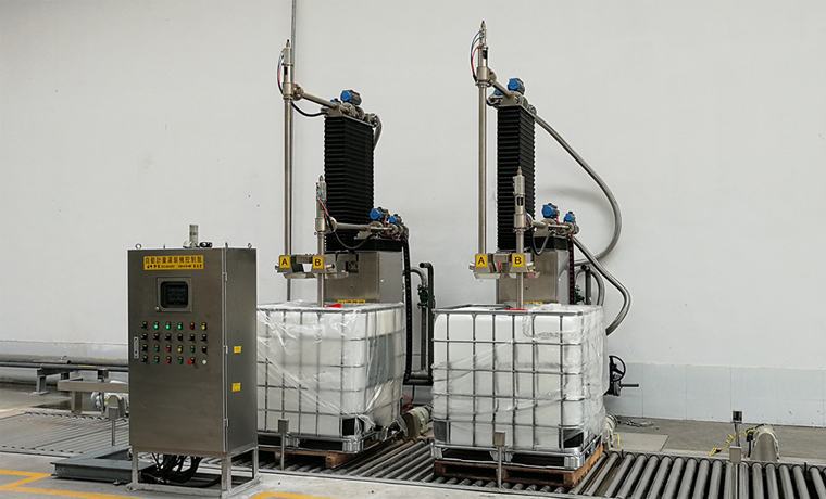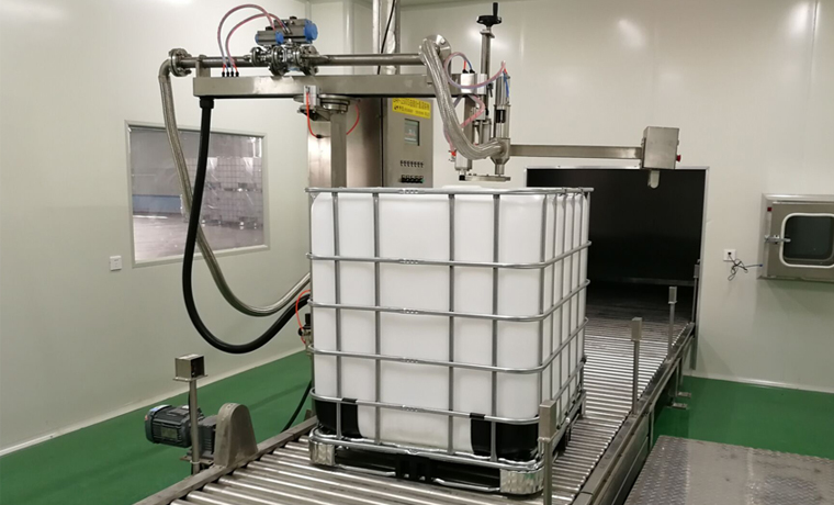GAF-1500型200Lx4桶 IBC噸桶全自動(dòng)灌裝機(jī)現(xiàn)場(chǎng)調(diào)試