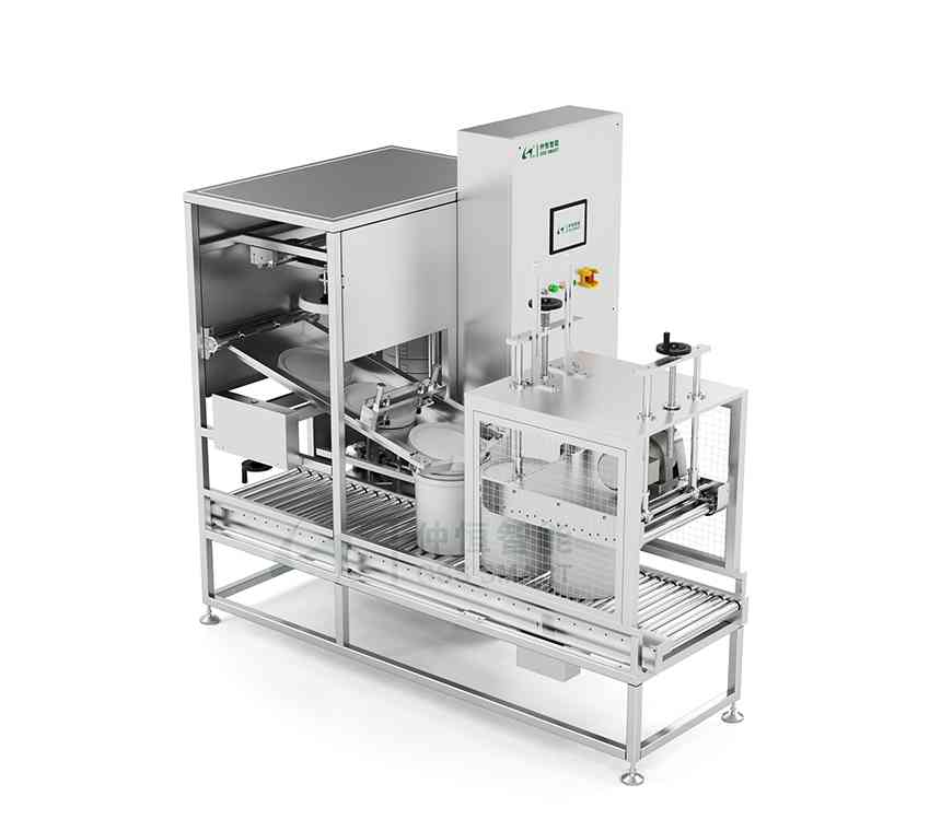 本產(chǎn)品是專為10~30kg塑料敞口涂料桶灌裝線設計的配套設備,具備自動掛蓋和自動碾蓋功能。設備的上蓋、掛蓋和碾蓋機構均可調(diào)節(jié),適用于不同規(guī)格的10~30kg包裝桶。系統(tǒng)具有缺蓋、未掛上蓋、壓蓋不緊檢測及報警停機功能,以確保整條生產(chǎn)線安全無誤、流暢運行。