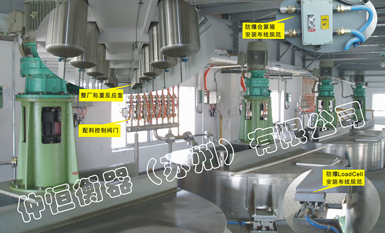 稱重配料系統(tǒng)桶槽秤現(xiàn)場安裝完成驗收,搭配專用高精度,動態(tài)式稱重傳感器模組,可在動態(tài)下投料稱重,依實際需求,每個反應(yīng)釜采用三組或四組傳感器模組。
